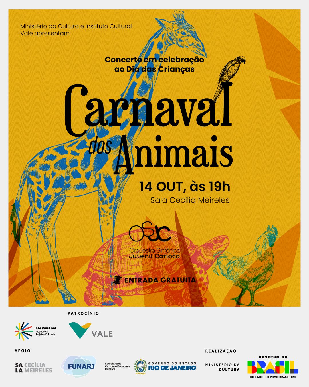 No dia 14 de outubro, a Orquestra Sinfônica Juvenil Carioca (OSJC) convida o Duo Sant’Ana Leal para interpretar “O Carnaval dos Animais”, do compositor francês Camille Saint-Saëns, na Sala Cecília Meireles. Sob a regência do maestro Carlos Sarria, o repertório da noite conta ainda com obras de Carlos Gomes, Maurice Ravel, Aram Khachaturian e Arturo Márquez. A orquestra tem patrocínio do Instituto Cultural Vale, por meio da Lei Federal de Incentivo à Cultura, e o concerto tem apoio da FUNARJ e da Sala Cecília Meireles. A entrada é gratuita.
