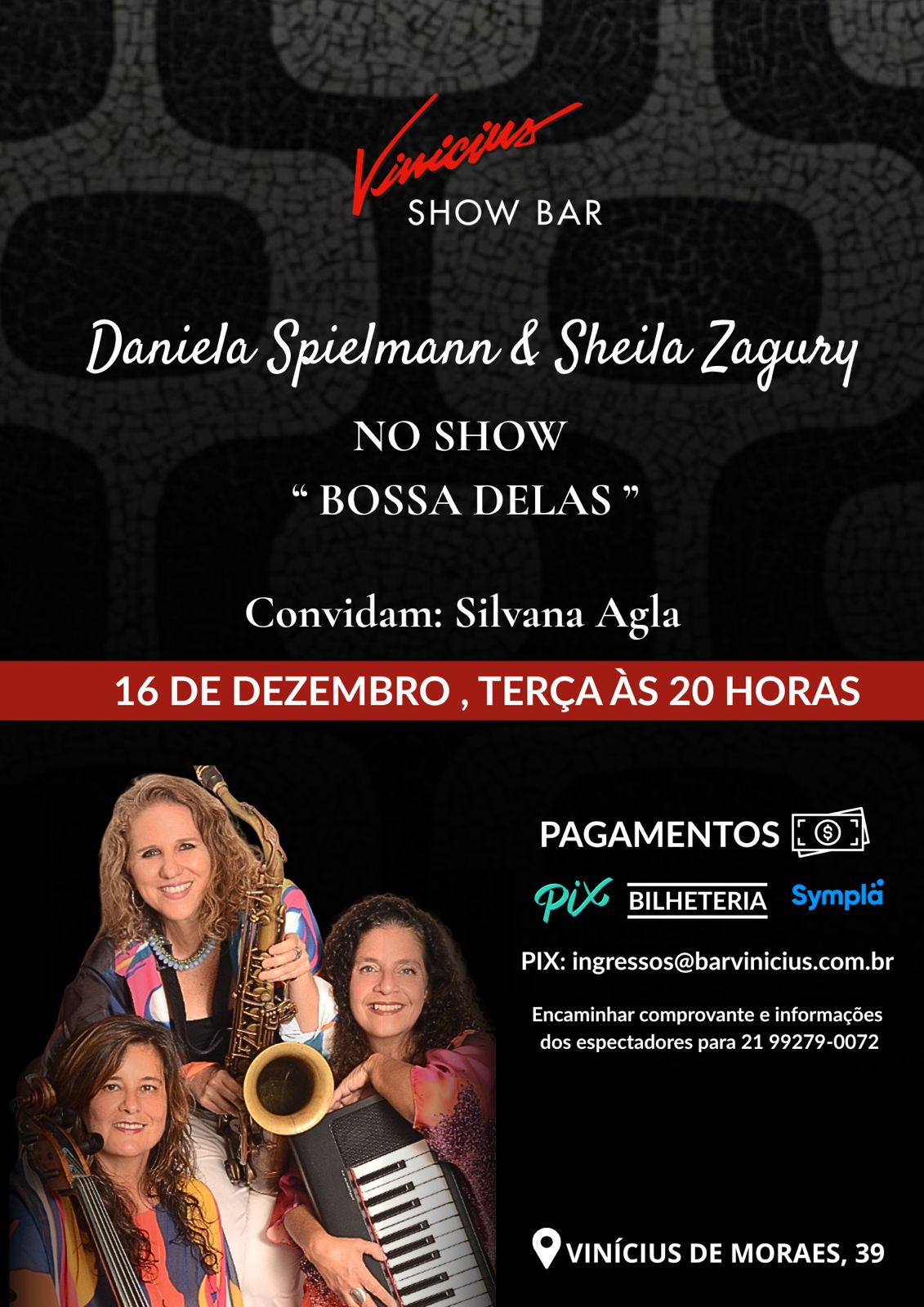 Dia 16 de dezembro terça-feira as 20 horas o Vinícius Show Bar apresenta Bossa Delas