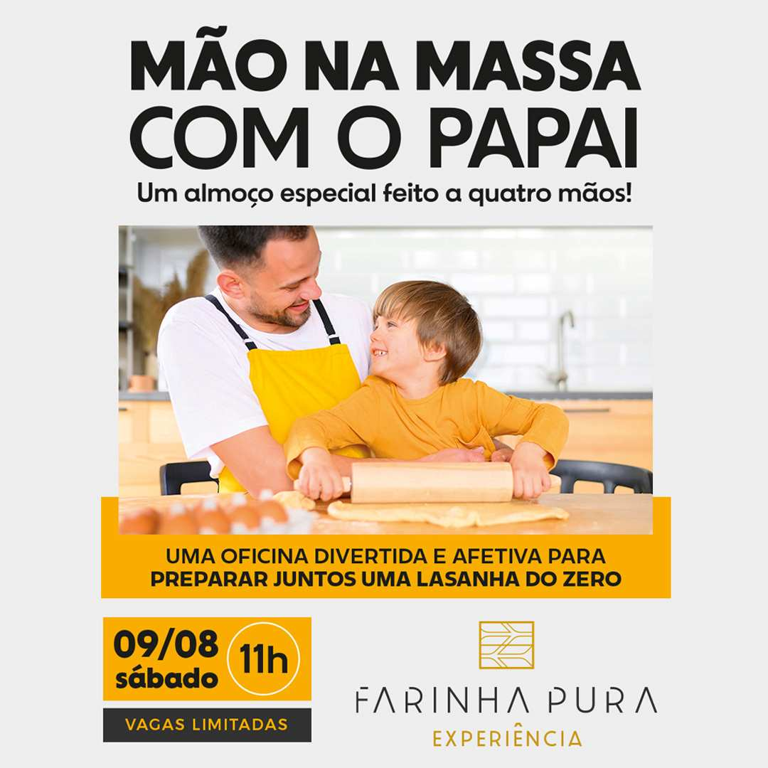 Em comemoração ao Dia dos Pais, o Empório Farinha Pura, mercado gourmet em Botafogo, promove uma oficina gastronômica especial no sábado, dia 9 de agosto. O “Mão na Massa Com o Papai” convida pais e filhos, a partir de 4 anos, a prepararem juntos uma lasanha completa, desde a massa fresca até o recheio. A atividade visa proporciona uma vivência afetiva e fora do comum para celebrar a data, fortalecendo os laços familiares por meio da gastronomia.