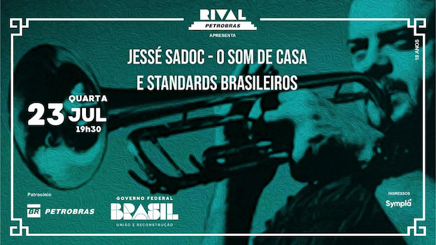 O renomado trompetista Jessé Sadoc traz ao palco do Teatro Rival Petrobras o show instrumental “O som da casa e standards brasileiros”, que acontecerá no dia 23 de julho. Acompanhado por músicos estelares e amigos de longa data, Sadoc é compositor, arranjador e diretor musical do espetáculo. Os artistas convidados incluem: Marcelo Martins (sax tenor, flauta), Kiko Continentino (teclados), Alberto Continentino (baixo) e Renato “Massa” Calmon (bateria).