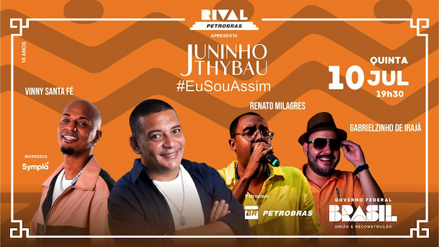 No dia 10 de julho, o cantor e compositor Juninho Thybau sobe ao palco do Teatro Rival Petrobras para apresentar o show “Eu Sou Assim”, uma verdadeira celebração ao samba de raiz. Este evento marca o lançamento do produto audiovisual que o artista gravou no Cacique de Ramos. A festa contará com convidados especiais: Vinny Santa Fé, Gabrielzinho de Irajá e Renato Milagres.