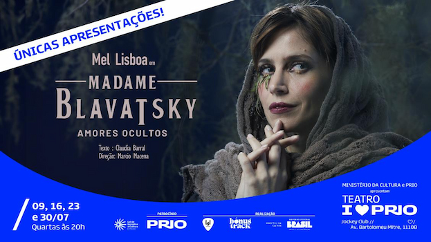 Mel Lisboa apresenta MADAME BLAVATSKY, um solo inspirado na trajetória da escritura russa Helena Petrovna Blavátskaya (1831-1891), cofundadora da Sociedade Teosófica. A peça retrata a vida dessa figura emblemática através de um monólogo dramaturgicamente criado por Claudia Barral, inspirado pelo contato da autora com a peça “Madame Blavatsky”, de Plínio Marcos. A direção é assinada por Marcio Macena.
