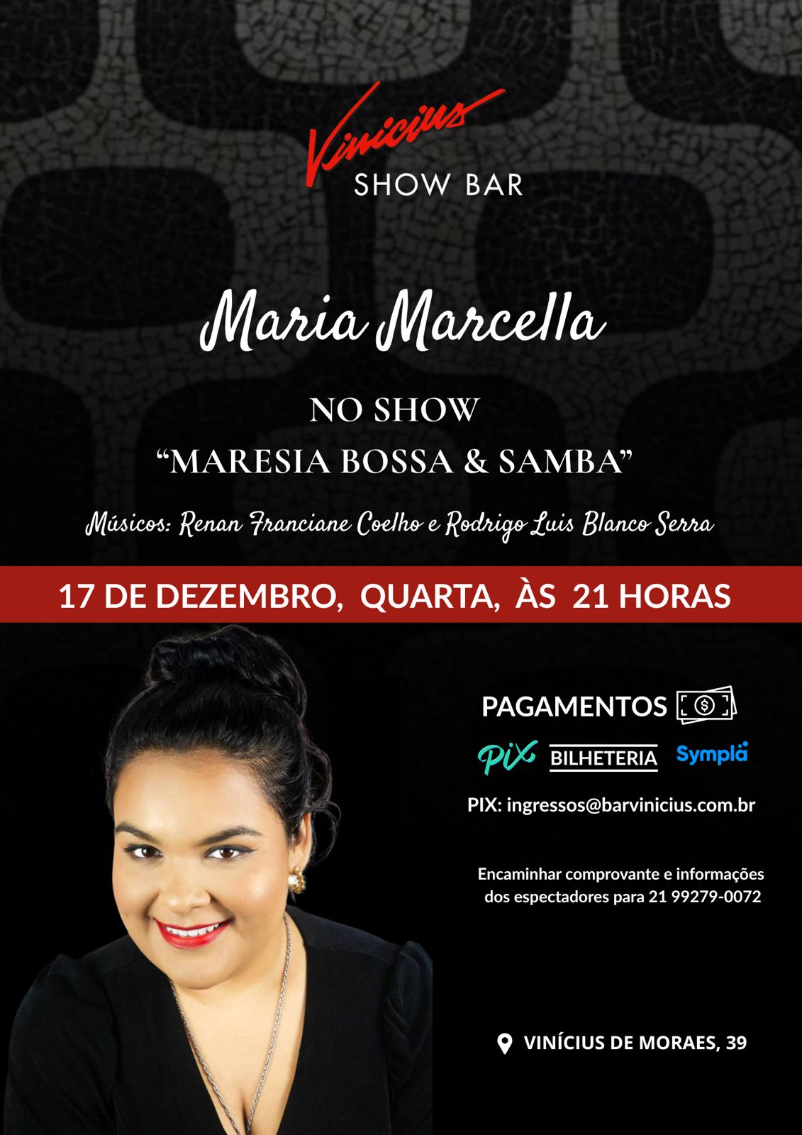 o Vinícius Show Bar apresenta Maria Marcella no show ‘Maresia Bossa & Samba’