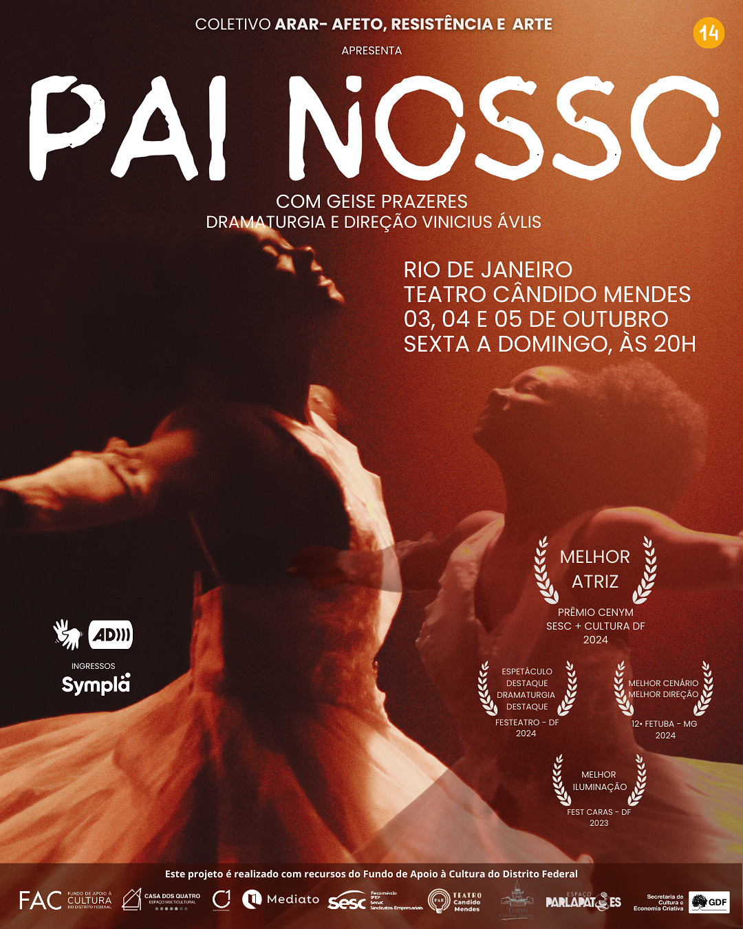 O espetáculo PAI NOSSO, de Brasília, chega ao Rio de Janeiro para curtíssima temporada de 3 a 5 de outubro, no Teatro Cândido Mendes!