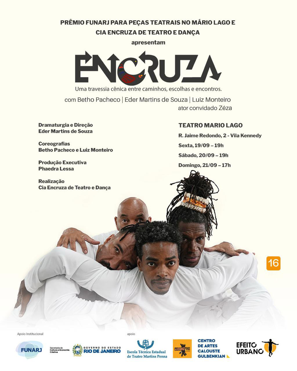 O projeto Encruza, que tem realização da Cia Encruza de Teatro e Dança foi contemplado com o Prêmio Funarj de Peças Teatrais 2025, da Funarj, através da Secretaria de Cultura e Economia Criativa do Governo do Estado do Rio de Janeiro. Com esta iniciativa, faremos três apresentações no Teatro Mário Lago, localizado na Vila Kennedy, em Bangu. O prêmio, que contemplou 12 diferentes espetáculos teatrais, dentre eles, a nossa “Encruza”, tem como objetivo incentivar a ocupação do espaço cultural e apoiar os artistas das artes cênicas.