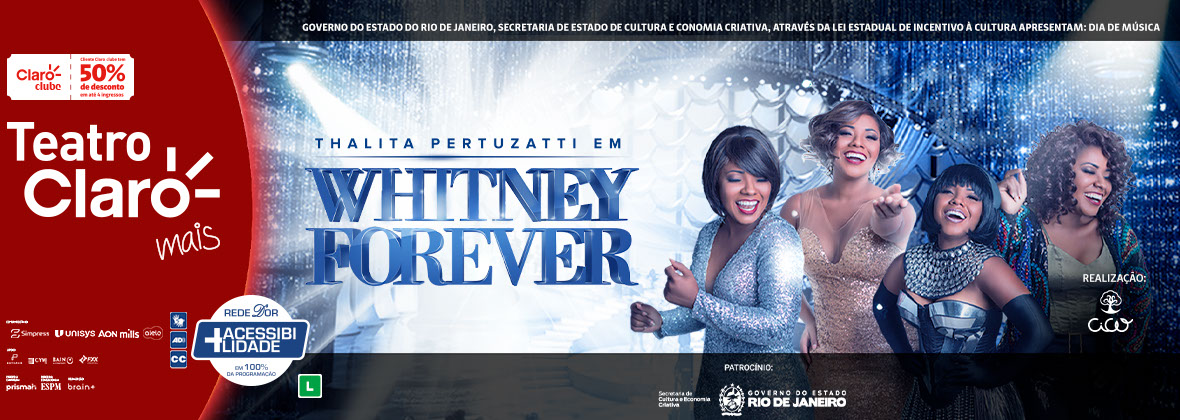 Sucesso de público e aclamado pela crítica, o espetáculo “Whitney Houston Forever”, estrelado pela talentosa cantora Thalita Pertuzatti, leva aos palcos um tributo emocionante à trajetória musical da diva americana Whitney Houston.