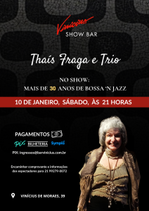 O Vinicius Show Bar apresenta Thaís Fraga trio no show ‘Mais de 30 Anos de Bossa ’n Jazz’